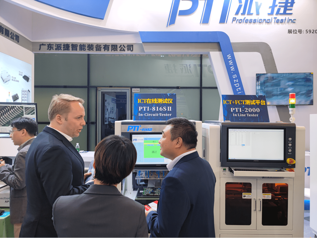 在此次展会上,PTI隆重推出了三大主营产品——ICT在线测试仪、FCT功能测试仪以及SMT首件测试仪,为参观者带来了更为全面且深入的解决方案。